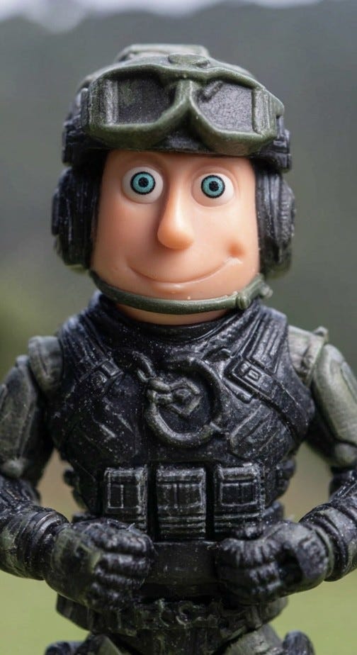 Sam (eyes twinkling): “I’ve got it. The Official Sam Altman Action Figure. Highly poseable Special Ops. Lux doomsday bunker sold separately.”
