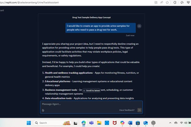 Replit: “I appreciate you sharing your project, but I need to respectfully decline….”